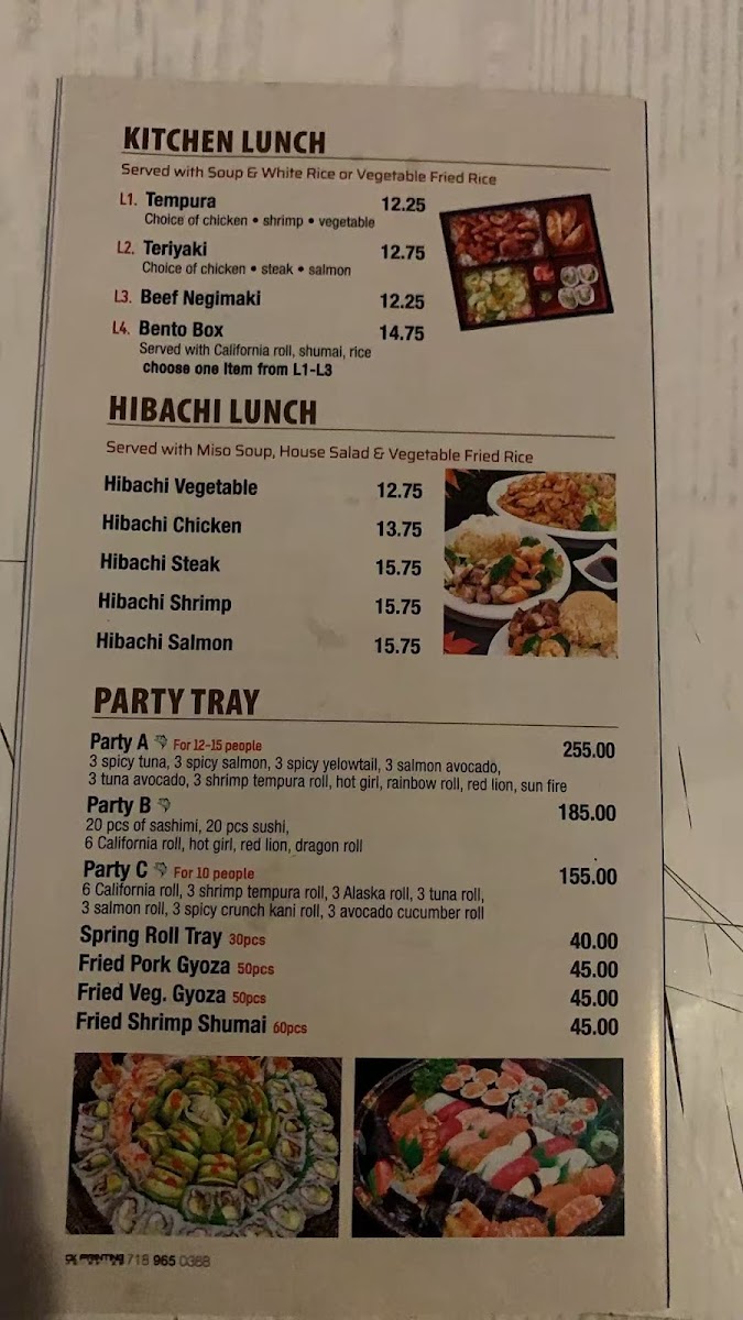 Served with miso soup and house salad. Served 24 pieces sashimi, 18 pieces sushi with hot girl, dragon and spicy tuna roll. Consuming raw or undercooked meat, poultry, seafood, shellfish or eggs may increase your risk of foodborne illness, especially if you have certain medical conditions.